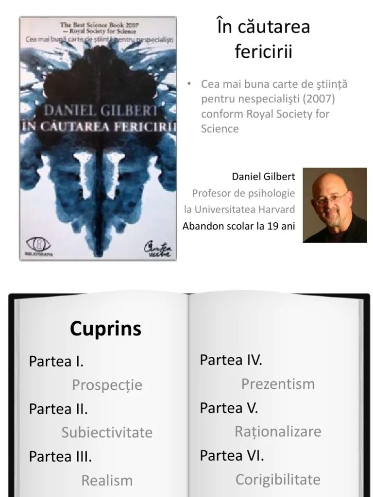 Daniel gilbert in aceasta carte,daniel gilbert ne impartaseste cele mai ciudate aspecte ale mintii umane si ne indruma pasii spre fericirea mult cautata.va garantez ca lectura acestei carti va va prilejui mari bucurii.cartea este o explicatie lucida si fermecatoare care justifica de ce asteptarile noastre nu sunt intotdeauna satisfacute. (trad.) 14 editura humanitas piaţa presei libere 1, 013701 bucureşti, românia tel. Transport gratuit >120 lei si livrare rapida. Alege formatul pentru descarcare ebook13/07/2019 · cartea în căutarea fericirii de jill shalvis a fost oferită de targulcartii.ro recenzii și prezentări cărți jill shalvis